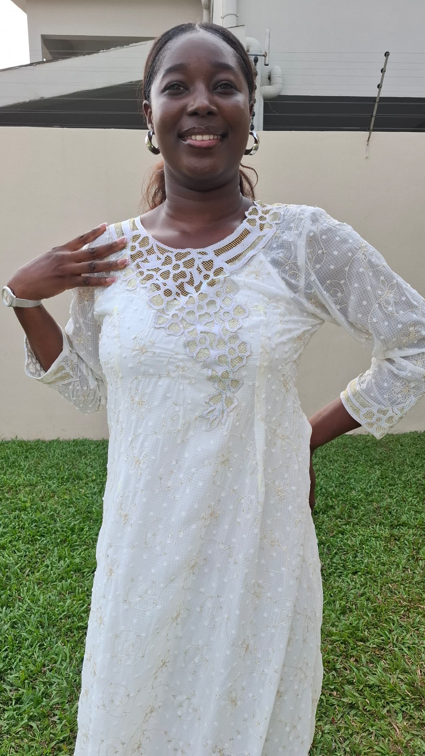 Matière mousseline perlée. Robe intérieure et foulard inclus.